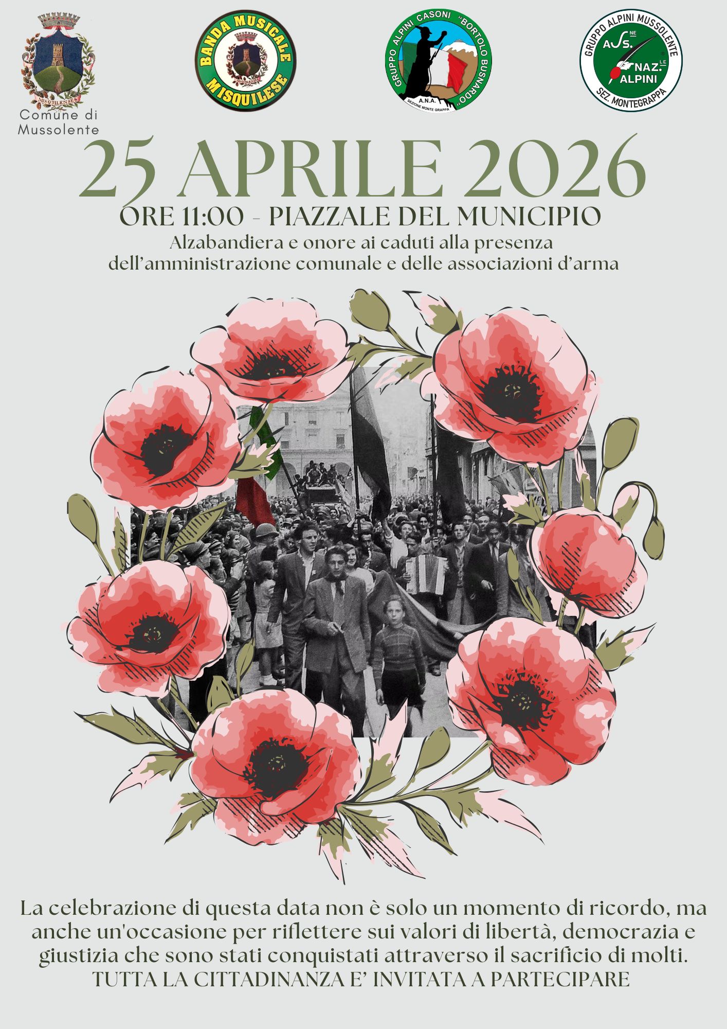 Il Comune di Mussolente invita tutta la popolazione alla celebrazione del 25 aprile